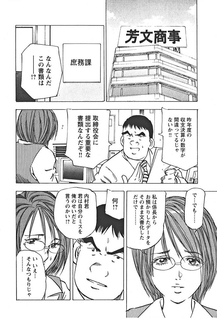ある会社の係長は淫乱と噂のOLと体の関係を持つ。彼女から彼の同期の課長の愚痴を聞いたかれは課長を失脚させることを思いつく。OLに課長とホテルに行かせ、それを写真に撮る計画だが…。